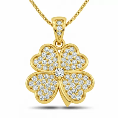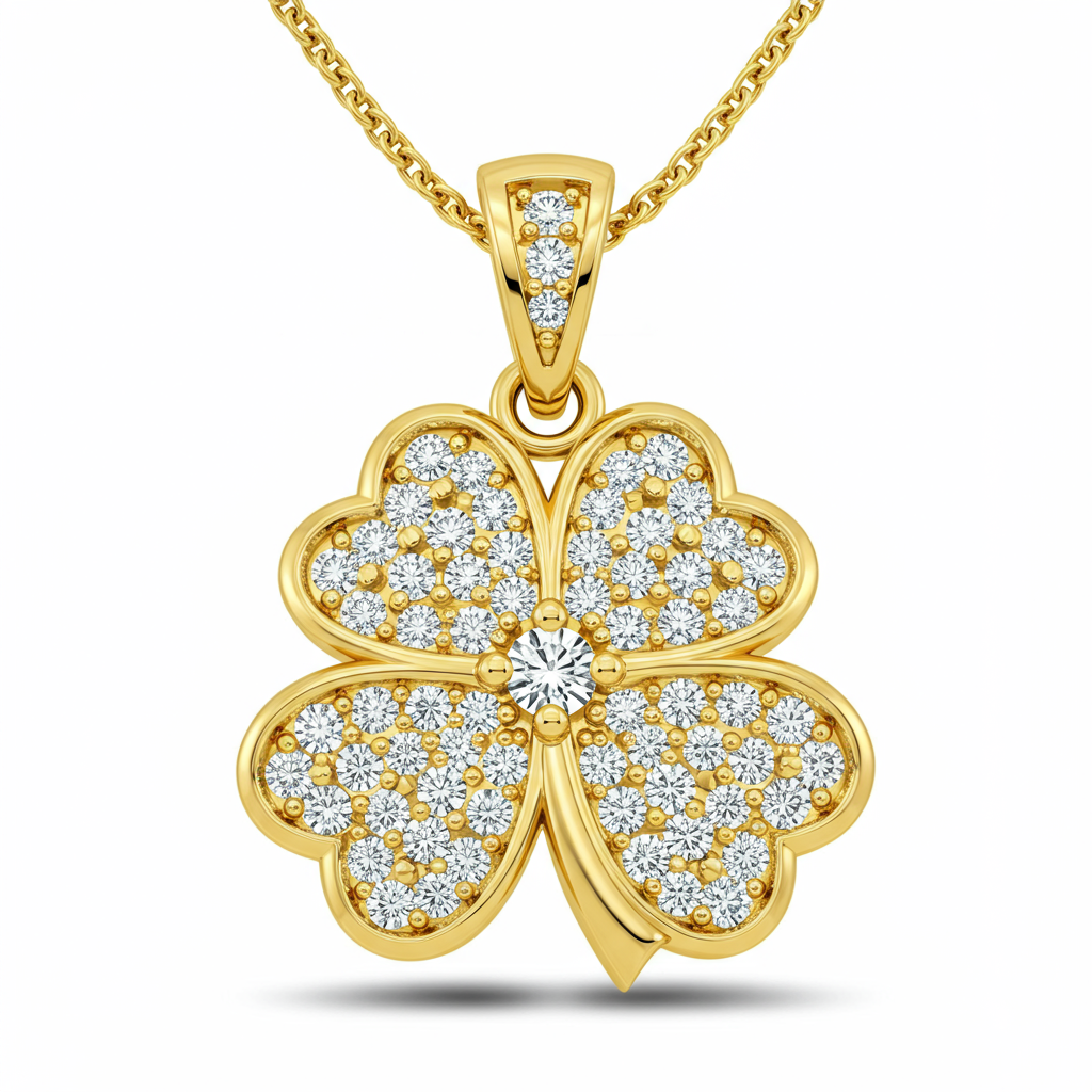 This exquisite Clover Necklace pays homage to classic elegance, featuring a meticulously crafted four-leaf clover motif. Set in radiant 18KT Yellow Gold, the piece symbolizes luck, health, and fortune. The surface is adorned with micro-pave set, high-clarity diamonds, emphasizing maximum brilliance and a luxurious texture. Suspended from a delicate yet durable chain, this necklace transitions seamlessly from daywear to evening glamour.