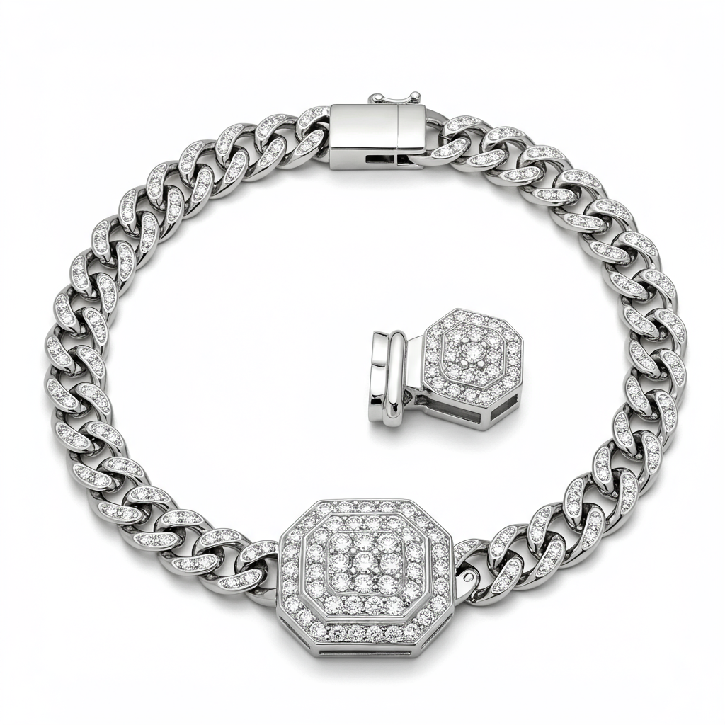 This distinguished men's diamond necklace epitomizes powerful luxury and modern craftsmanship. Crafted from brilliant 18KT white gold, the robust cuban link chain provides a foundational texture of masculinity. It is meticulously accented with precision-set VVS-quality round diamonds, delivering unparalleled sparkle. This statement piece offers enduring quality and sophisticated design, perfect for the modern gentleman's wardrobe.