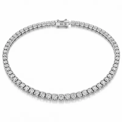 The Dorsey Tennis Necklace is the epitome of classic elegance, featuring an uninterrupted stream of brilliant round-cut diamonds. Each diamond is meticulously prong-set in lustrous 18KT white gold, ensuring maximum fire and security. This necklace drapes flawlessly around the collarbone, offering breathtaking sparkle from every angle. It serves as a timeless investment piece, perfect for both significant events and elevating daily wear.