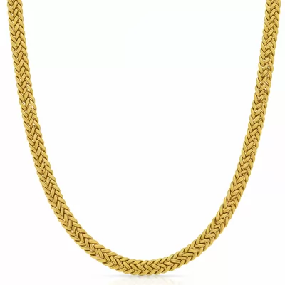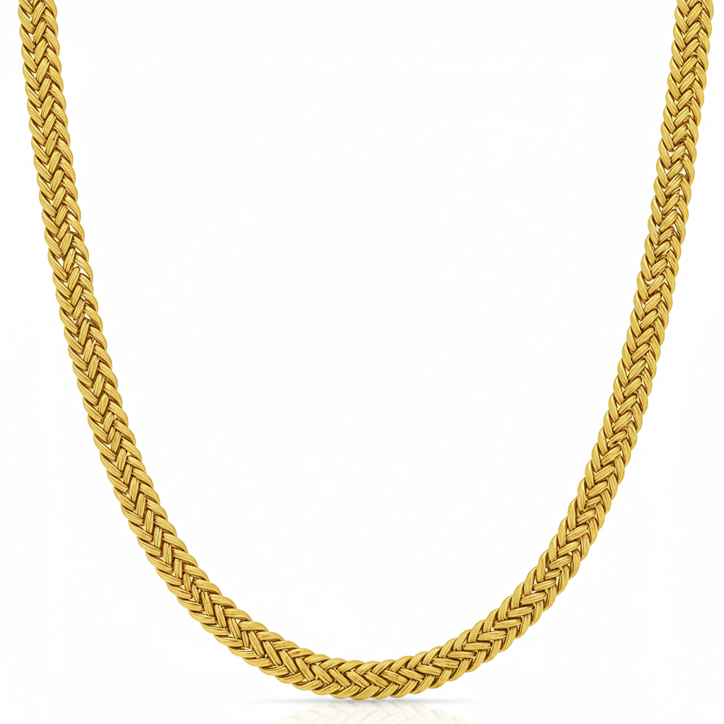 The Herringbone Necklace is the epitome of sophisticated fluidity, meticulously crafted in radiant 18KT yellow gold. Its signature flat, braided pattern captures light with every movement, creating a mesmerizing liquid effect against the skin. This iconic chain is highly polished to achieve a flawless, mirror-like finish, offering a timeless yet distinctly modern statement piece. Perfect for layering or wearing solo, it brings an immediate touch of high-fashion elegance to any ensemble.