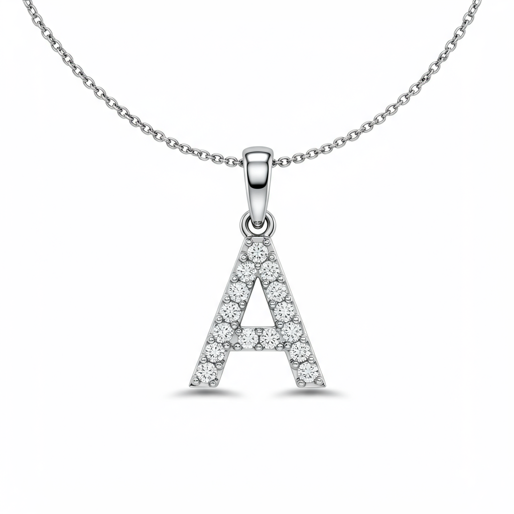 The Initial Pendant Necklace is an exquisite personal statement piece, meticulously crafted in radiant 18KT white gold. Featuring a delicate letter silhouette fully paved with brilliant VVS G-H diamonds, this necklace catches the light with every subtle movement. Its timeless design makes it the perfect signature accessory for daily wear or an unforgettable personalized gift. Suspended from a slender adjustable chain, this piece offers unparalleled elegance and refinement.