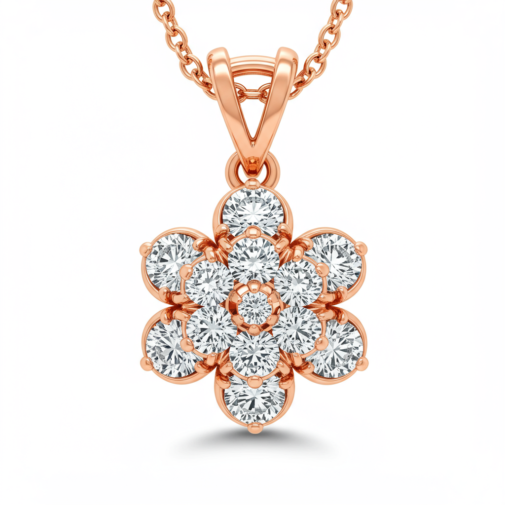 The Cherry Necklace captures playful elegance, featuring a delicate cluster of brilliant round diamonds set to mimic ripe cherries hanging from a stylized vine. Crafted in radiant 18KT Rose Gold, the metal's warmth perfectly complements the exceptional fire of the VVS stones. This piece successfully balances whimsy with high sophistication, making it an ideal signature accessory for both daily wear and special occasions. Its flawless articulation ensures the pendant rests beautifully, catching light from every angle.