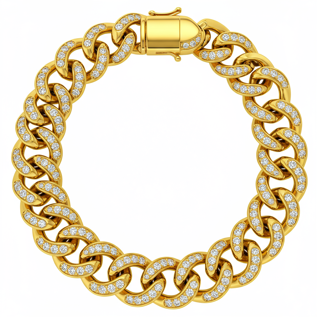 This magnificent chunky chain necklace redefines modern luxury with its bold, sculptural links. Crafted in luminous 18KT yellow gold, the statement piece features meticulously placed pavé diamonds that catch the light from every angle. The oversized links provide an exceptional weight and presence, making it the perfect centerpiece for both formal attire and elevated daily wear. A true investment piece, it seamlessly blends contemporary design with timeless brilliance.