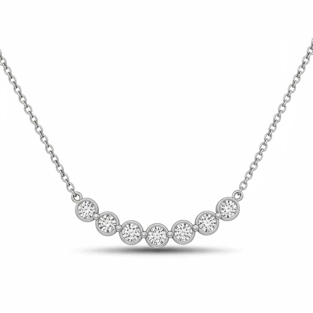 The Diamond Station Necklace is an essential piece of modern luxury, showcasing perfectly calibrated brilliant-cut VVS diamonds evenly spaced along a delicate 18K white gold chain. This design offers continuous, captivating sparkle, making it versatile for both everyday wear and formal occasions. Each diamond station is meticulously bezel-set, ensuring security while maximizing light return and emphasizing the stone's flawless quality. It represents effortless sophistication and timeless elegance, making it an heirloom piece.