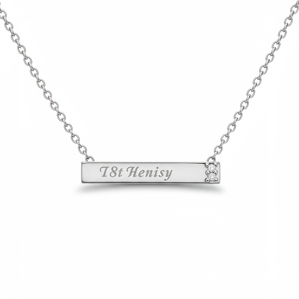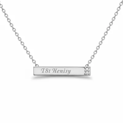This bespoke 18KT white gold necklace offers a cherished way to keep loved ones close, featuring an elegantly tailored bar pendant designed for personalization. Expertly crafted, the piece showcases the finest craftsmanship, allowing for the custom engraving of children's names or significant dates. Small, scintillating VVS diamonds accent the delicate bail, adding a touch of sophisticated sparkle to this deeply meaningful keepsake. Suspended on a perfectly matched link chain, this necklace transitions effortlessly from daily wear to formal occasions, celebrating family bonds with grace and luxury.