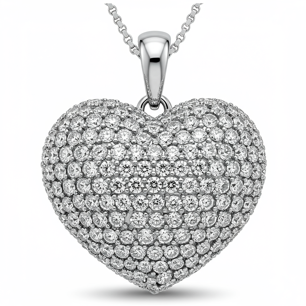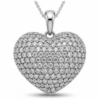 The Puffy Heart Necklace embodies modern romance and timeless elegance. Crafted in luminous 18KT white gold, the volumetric heart silhouette is meticulously micro-pave set with brilliant VVS diamonds, maximizing sparkle from every angle. Its smooth, rounded design provides a contemporary and tactile feel, elevating the classic heart motif. Suspended from a delicate adjustable chain, this piece serves as a beautiful symbol of enduring affection, perfect for both daily luxury and significant occasions.