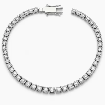 This exquisite tennis necklace features a seamless line of brilliant, round lab grown diamonds, capturing eternal elegance and sophistication. Each VVS clarity stone is meticulously secured in a four-prong setting, maximizing light return and fire across the entire length. Crafted in radiant 18KT white gold, this piece offers a sophisticated drape and a secure box clasp for confident wear. It represents the perfect fusion of sustainable luxury and timeless design, making it an essential statement piece for any collection.