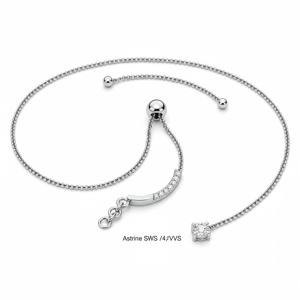 The Necklace Lengths Chart piece redefines versatility, featuring a delicate 18KT white gold chain designed for seamless adjustment between choker and matinee lengths. A single, brilliant VVS round diamond acts as a subtle focal point, ensuring effortless sophistication for any neckline. This essential accessory provides perfect layering potential and flawless individual wear, making it a foundational piece for every fine jewelry collection. The secure slider mechanism allows for micro-adjustments, perfectly demonstrating various standard necklace lengths.