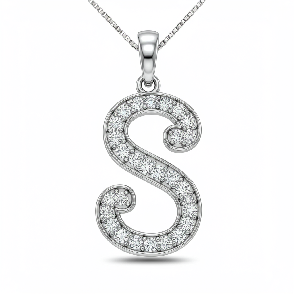 The Diamond 'S' Initial Necklace is a testament to personalized luxury, meticulously crafted in radiant 18KT white gold. A delicate script 'S' is completely illuminated by micro-pave set, brilliant VVS diamonds, catching the light with every movement. Suspended from a slender chain, this piece offers a timeless blend of elegance and personal significance. It serves as a beautiful heirloom, perfect for commemorating a milestone or celebrating self.