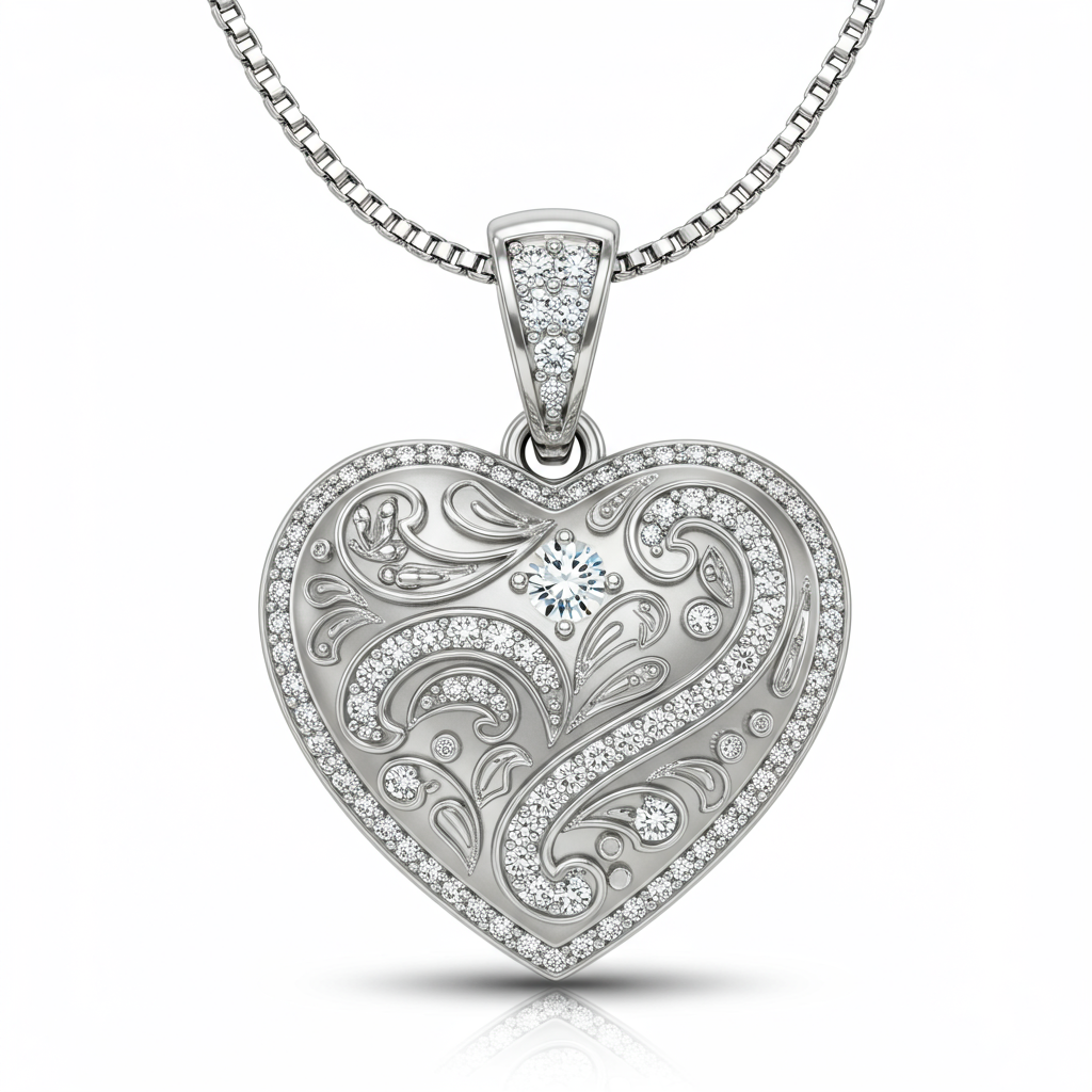 The Engraved Heart Necklace is a timeless expression of affection, masterfully crafted in 18KT white gold. The central heart pendant is adorned with brilliant micro-pave diamonds, creating a continuous halo of light. The smooth back surface is ready for personalized inscription, making it the perfect sentimental gift. Suspended from a delicate yet sturdy cable chain, this piece rests elegantly near the heart.