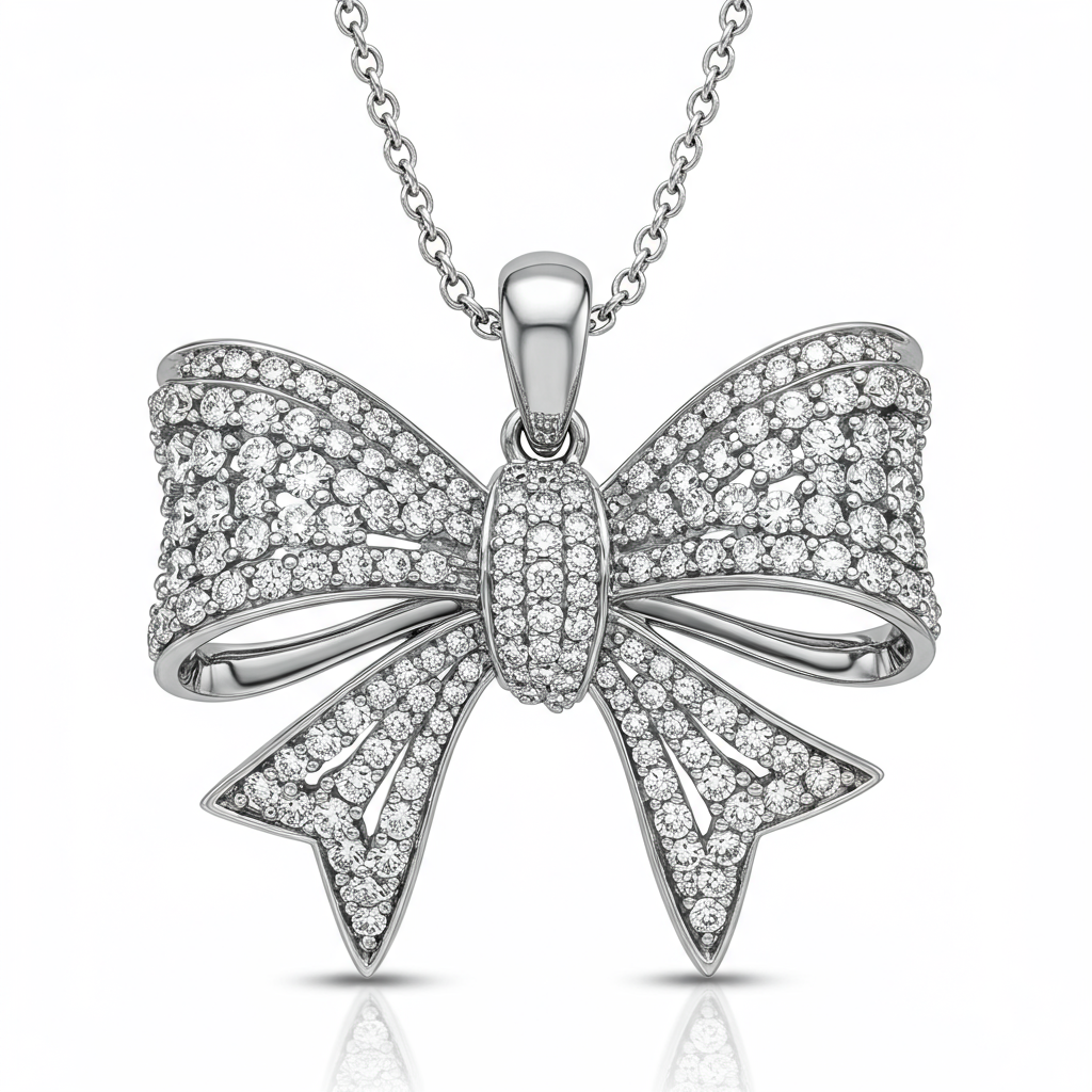 The Bow Necklace embodies timeless charm and delicate craftsmanship. Expertly fashioned in gleaming 18KT white gold, the elegant ribbon silhouette is meticulously paved with brilliant VVS diamonds, catching the light from every angle. This refined piece serves as a sophisticated statement of grace, perfect for elevating both daily wear and formal occasions. Secured on a fine adjustable chain, it offers unparalleled wearability and enduring luxury.
