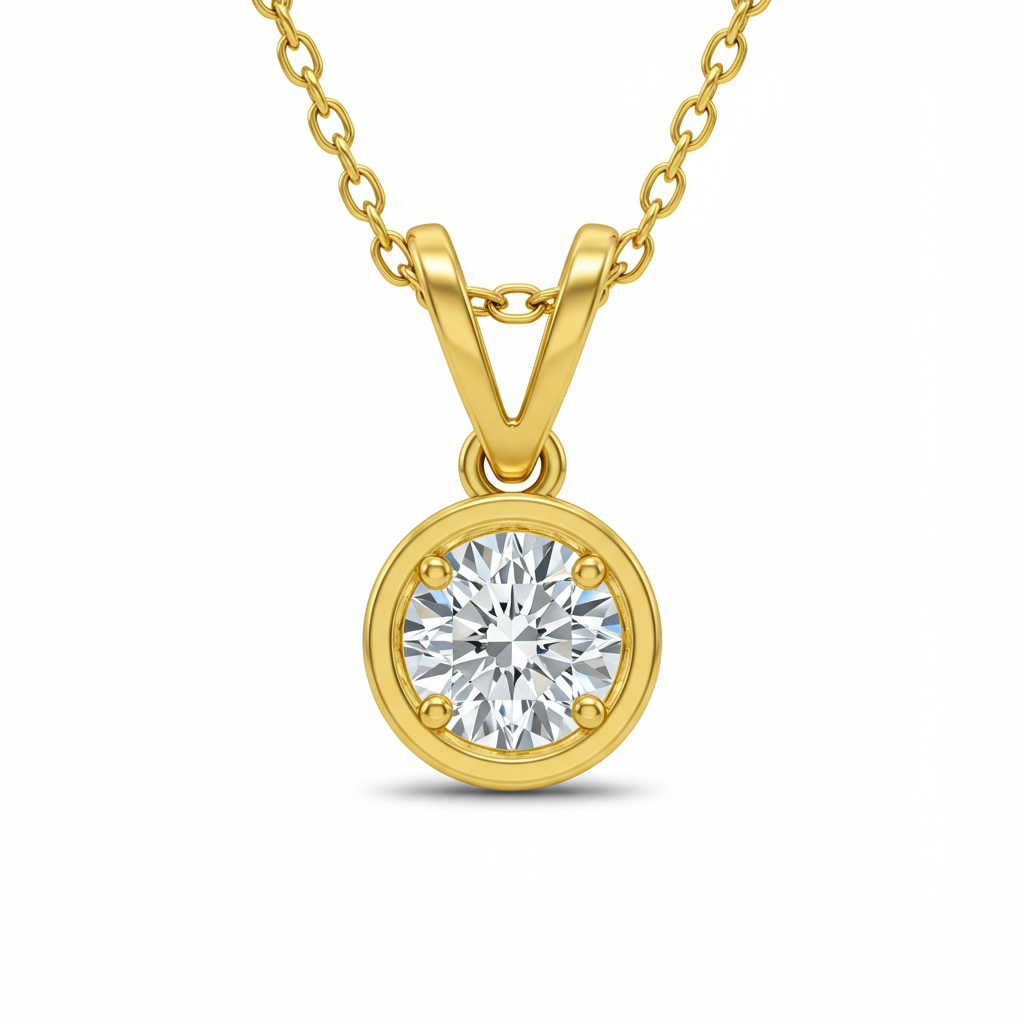 This exquisite necklace features a dazzling VVS diamond solitaire, perfectly bezel-set in lustrous 18K gold plated silver. The design combines timeless elegance with contemporary subtlety, making it an essential piece for daily wear or sophisticated evening events. The meticulous craftsmanship ensures the stone's brilliance is maximized, catching the light from every angle. It rests gracefully on a delicate, adjustable chain, symbolizing enduring luxury and refined taste.
