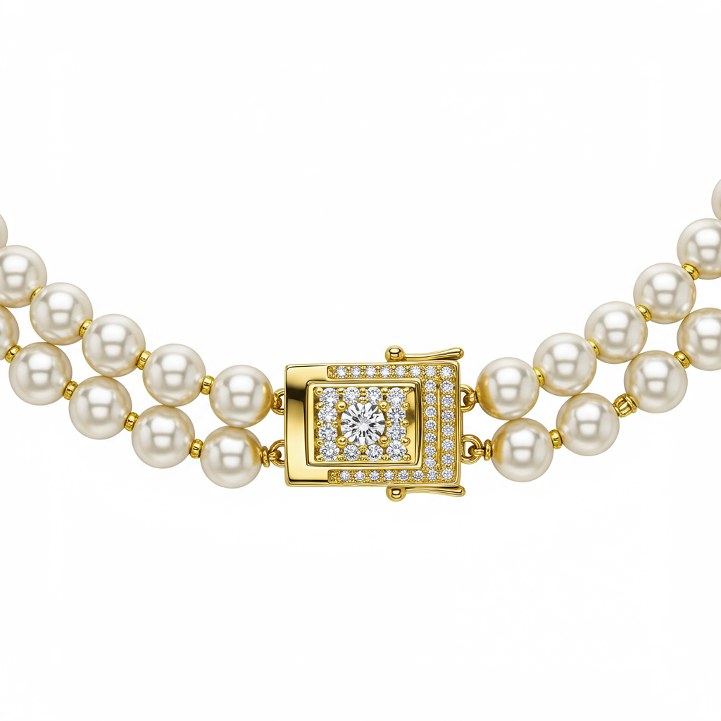 This exquisite Classic Pearl Bead Necklace features a flawless strand of perfectly matched, highly lustrous Akoya pearls. Each pearl is individually knotted, ensuring security and beautiful drape when worn. The necklace is secured by an elegant 18KT Yellow Gold box clasp, subtly accented with brilliant-cut VVS diamonds. This timeless piece embodies true sophistication, making it an essential addition to any luxury jewelry collection. Its classic design ensures lasting appeal for generations.