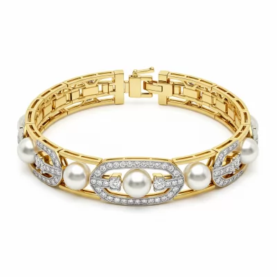 This exquisite gold pearl choker necklace epitomizes timeless sophistication, crafted in polished 18KT yellow gold. Seven perfectly matched, high-luster pearls drape elegantly across the neckline, separated by delicate diamond-pave links. The integrated VVS diamond accents catch the light with unparalleled brilliance, ensuring a magnificent sparkle. Designed to sit perfectly high on the neck, this piece offers luxurious versatility for both formal wear and elevated daily style.