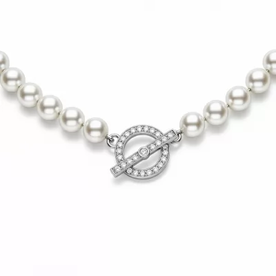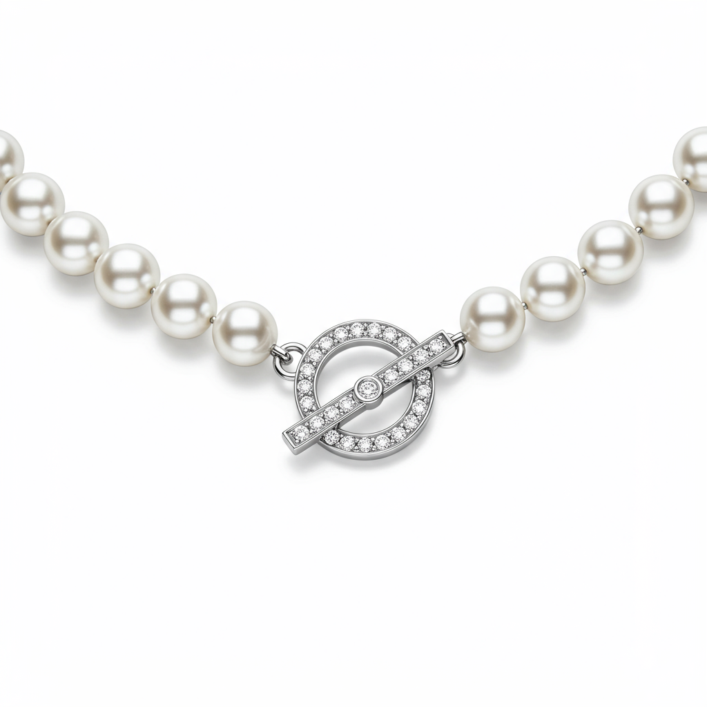 The Neptune Strand redefines luxury menswear, combining the timeless elegance of cultured pearls with a sleek, contemporary design. This sophisticated necklace features uniform, high-luster white pearls anchored by a substantial 18KT white gold toggle clasp. The clasp is meticulously micro-pave set with brilliant VVS diamonds, adding a subtle touch of opulence. It is designed for the modern gentleman seeking a bold yet refined statement piece that transcends traditional boundaries.