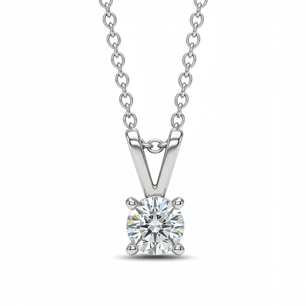 The Silver Necklace collection presents this exquisite solitaire pendant, a timeless piece designed for enduring elegance. Crafted in luminous 18KT white gold, it features a brilliant-cut diamond held securely in a refined four-prong setting. The stone exhibits exceptional VVS clarity and G color, ensuring breathtaking sparkle with every movement. This necklace rests gracefully at the collarbone, making it the perfect statement of sophisticated simplicity for any occasion.