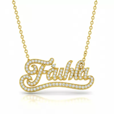 This bespoke custom name necklace offers the ultimate expression of personal luxury, meticulously crafted in radiant 18KT gold. Each letter is delicately formed in an elegant script font, fully lined with brilliant VVS quality pave diamonds for unmatched sparkle. Suspended from a slender, adjustable chain, this personalized piece rests perfectly against the collarbone, becoming a signature staple. It is an exquisite and meaningful heirloom designed for daily wear and cherished moments.