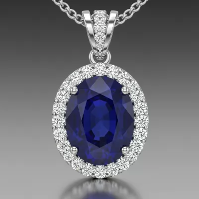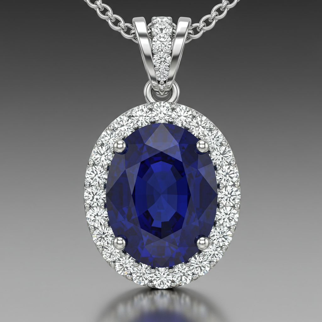 This exquisite gemstone necklace features a striking central colored stone held securely in a sophisticated prong setting. Surrounding the focal gem is a precise halo of dazzling VVS diamonds, maximizing the overall brilliance and sparkle. Crafted in 18KT gold, this piece balances classic elegance with modern luxury. It is an ideal statement piece for any significant occasion or a cherished addition to a fine jewelry collection.