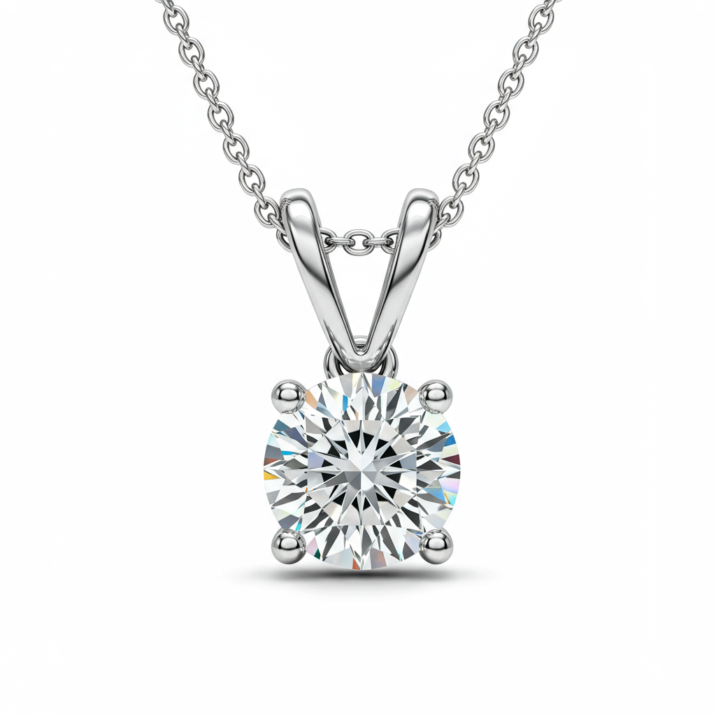 The Lab Grown Diamond Solitaire Necklace epitomizes modern elegance, featuring a brilliant 1.50ct round diamond suspended from a delicate 18KT white gold chain. This timeless piece showcases ethical luxury without compromising on breathtaking sparkle or quality. The refined four-prong setting allows the exceptional VVS clarity and G color of the stone to dominate, ensuring maximum light return and fire. It is a sophisticated addition suitable for daily wear or the most formal occasions, creating a focal point of radiant light. This piece represents the pinnacle of sustainable high jewelry.