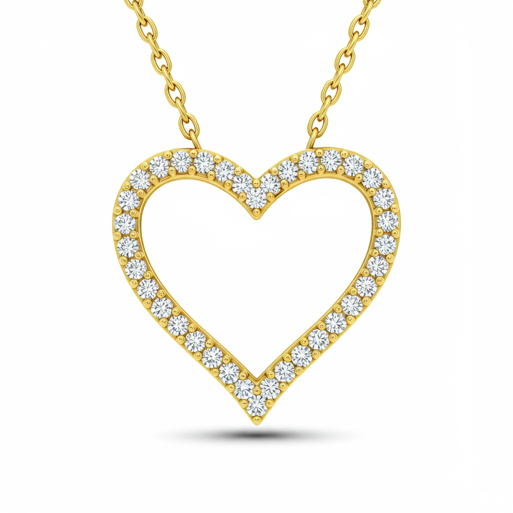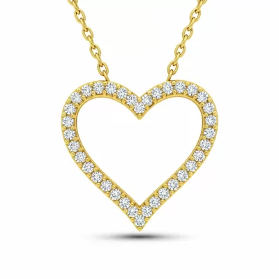 This exquisite heart pendant radiates romance and sophistication, meticulously crafted in warm 18KT yellow gold. The delicate outline is pave-set with brilliant VVS diamonds, catching the light with every movement. Suspended from a slender chain, this piece serves as a timeless emblem of affection. It is the perfect luxurious gift for celebrating love and cherished milestones.