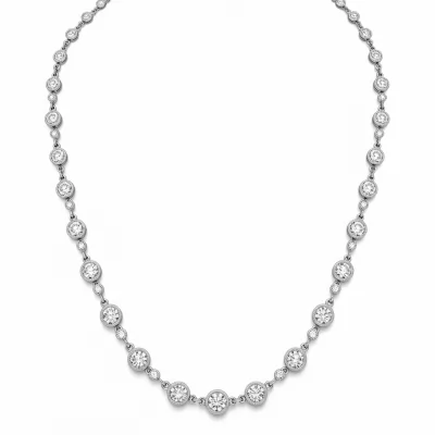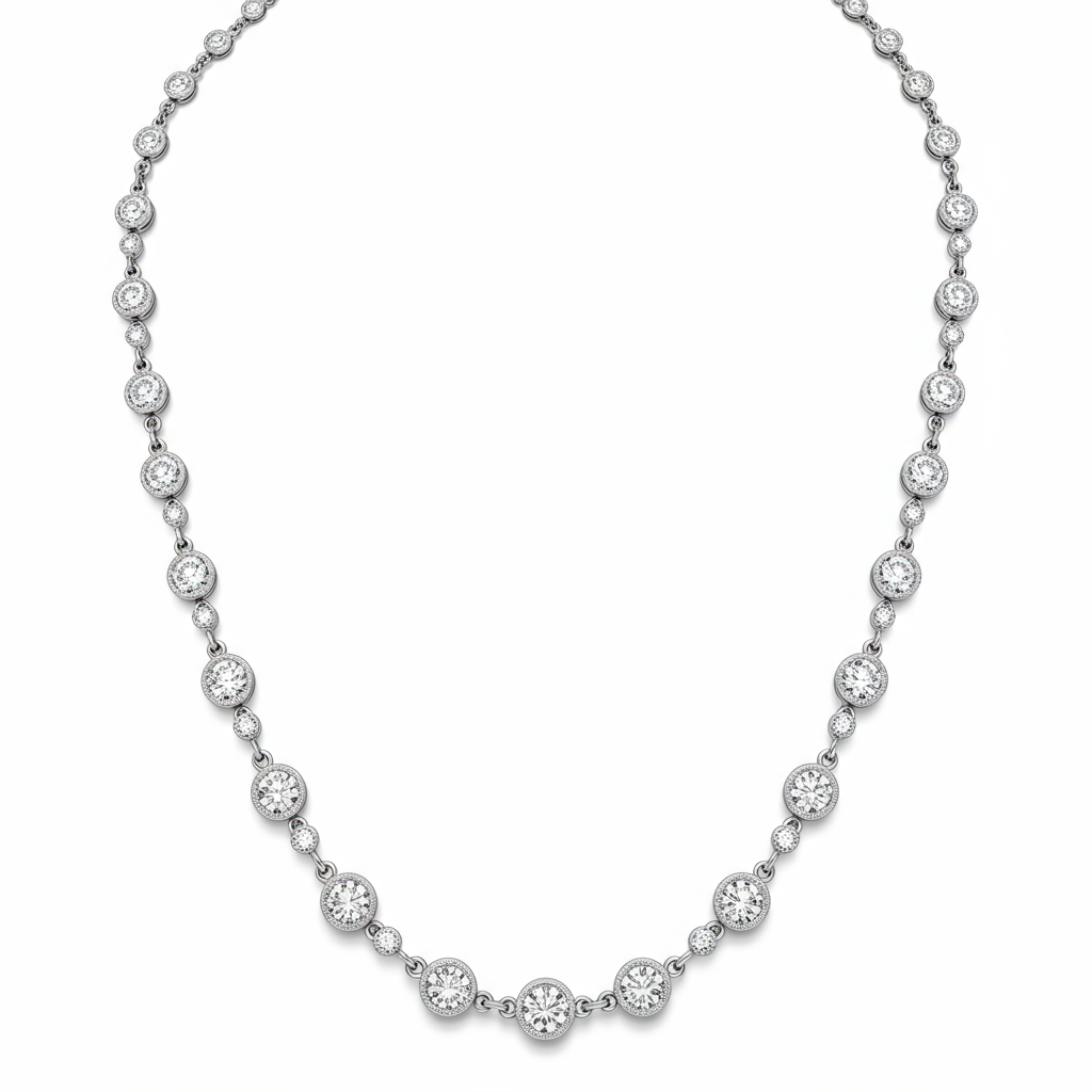 This exquisite long necklace embodies timeless elegance and modern sophistication. Crafted in brilliant 18KT white gold, the fine cable chain features multiple strategically placed diamond stations that catch the light from every angle. Each round brilliant diamond boasts VVS clarity, ensuring unparalleled sparkle and fire. It is designed to be versatile, whether draped singularly or layered with shorter pieces, making it a definitive statement accessory for any grand occasion.