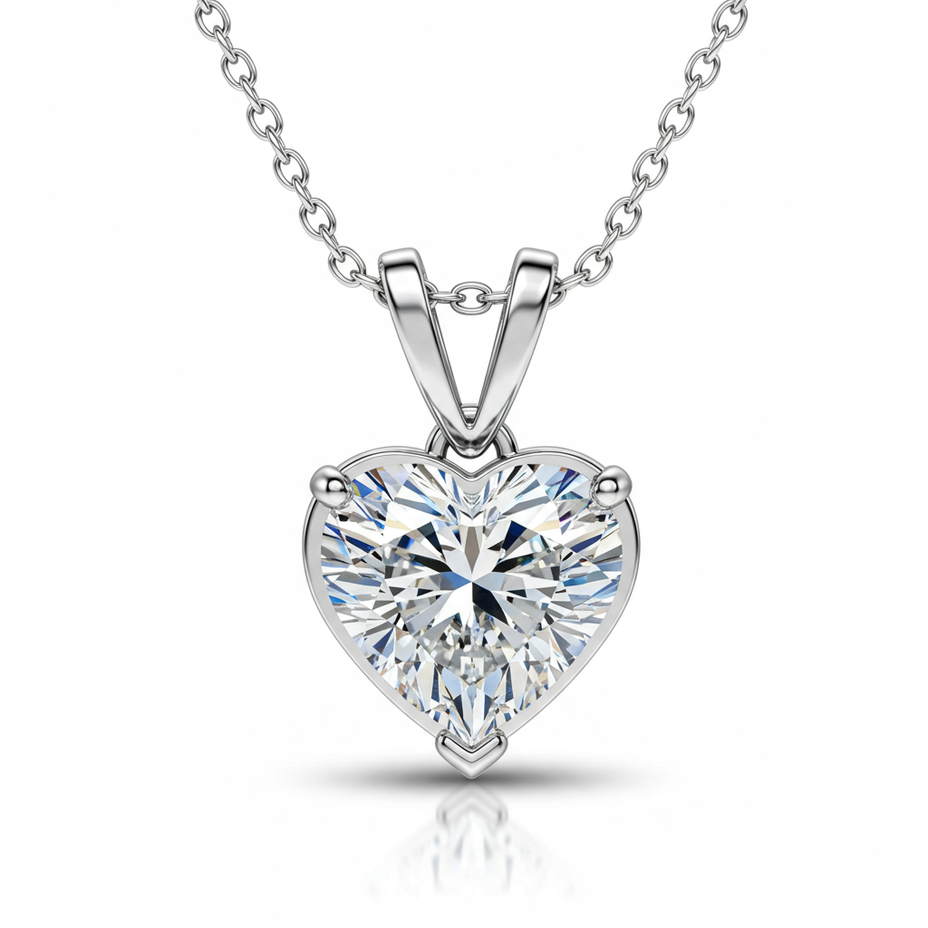 The perfect expression of devotion, this elegant heart-shaped diamond necklace is designed to capture her deepest affection. Crafted in luminous 18KT white gold, the central VVS solitaire diamond is securely prong-set, symbolizing an eternal bond. This sophisticated pendant hangs delicately from a fine chain, making it an ideal, timeless gift for your girlfriend. Its brilliant sparkle ensures she carries a piece of your heart wherever she goes, celebrating your lasting connection.