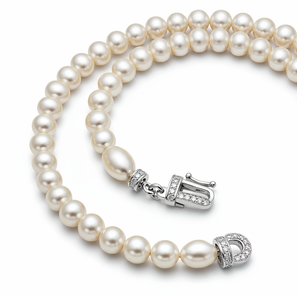This exquisite rice pearl necklace captures timeless elegance with a modern twist. Featuring hundreds of lustrous freshwater rice pearls individually hand-strung, it drapes beautifully around the collarbone. The delicate piece is secured by an 18KT white gold clasp, subtly accented with brilliant VVS round diamonds. Perfect for both formal occasions and everyday sophistication, this necklace is an essential addition to any luxury jewelry collection. Its unique texture and high-quality materials ensure lasting beauty.
