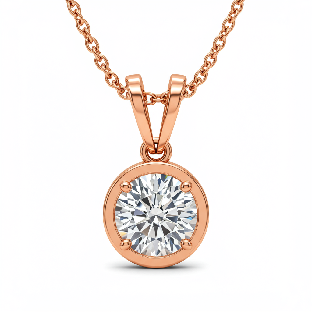 This exquisite rose gold necklace embodies timeless sophistication, designed for the modern woman. Featuring a brilliant-cut solitaire diamond set in a delicate bezel, it catches the light with unparalleled radiance. Crafted from luxurious 18KT rose gold, the warm hue beautifully complements the exceptional sparkle of the VVS stone. This versatile piece transitions effortlessly from daywear elegance to evening glamour, ensuring it remains a treasured addition to any fine jewelry collection.