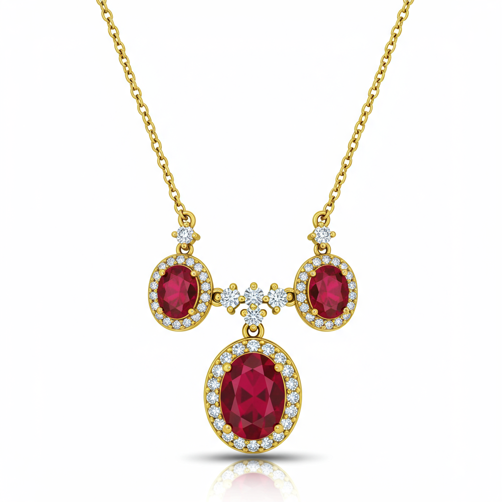 This exquisite ruby gold necklace design embodies timeless elegance and modern craftsmanship. Crafted in luminous 18KT yellow gold, the central motif features a brilliant array of high-quality natural rubies complemented by dazzling VVS diamonds. The articulated design ensures maximum movement and light reflection, creating a breathtaking sparkle with every turn. This piece is perfect for making a sophisticated statement at any grand occasion, promising to be a cherished heirloom for generations.