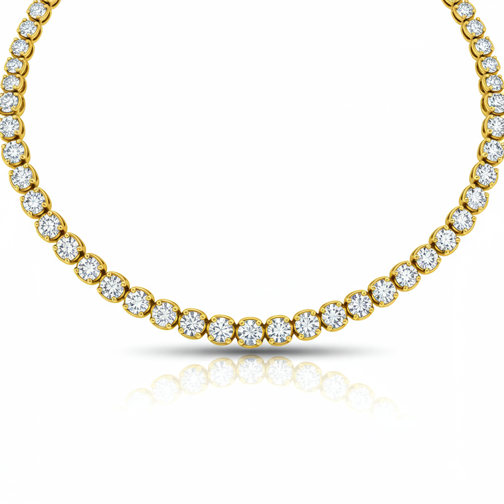 This captivating Yellow Gold Line Necklace embodies refined luxury, featuring a continuous stream of individually set VVS clarity diamonds. Crafted in radiant 18KT yellow gold, the delicate articulation allows the piece to drape fluidly around the neck, maximizing light return. With a total weight of 1.00 carat, the G-color round brilliant diamonds provide exceptional scintillation. This necklace serves as an essential foundation piece, effortlessly transitioning from daywear sophistication to evening glamour.