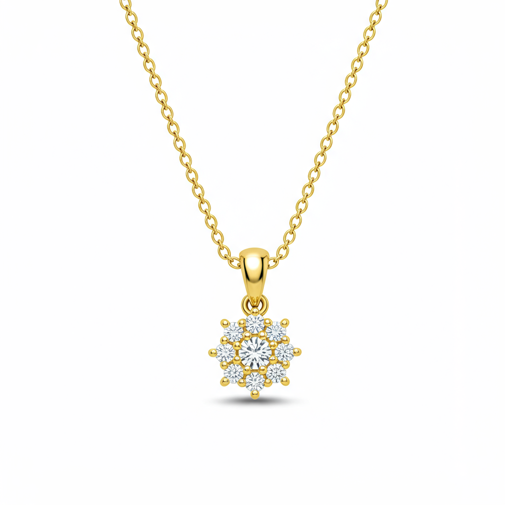 The 6-gram gold necklace is the epitome of understated elegance and modern wearability. Crafted in radiant 18KT yellow gold, this piece offers luxurious style without excessive weight, making it perfect for daily use or layering. The central motif features a delicate cluster of brilliant-cut diamonds, meticulously set to maximize sparkle and brilliance. This design offers exceptional value, balancing high-quality materials with an accessible price point, embodying timeless sophistication.