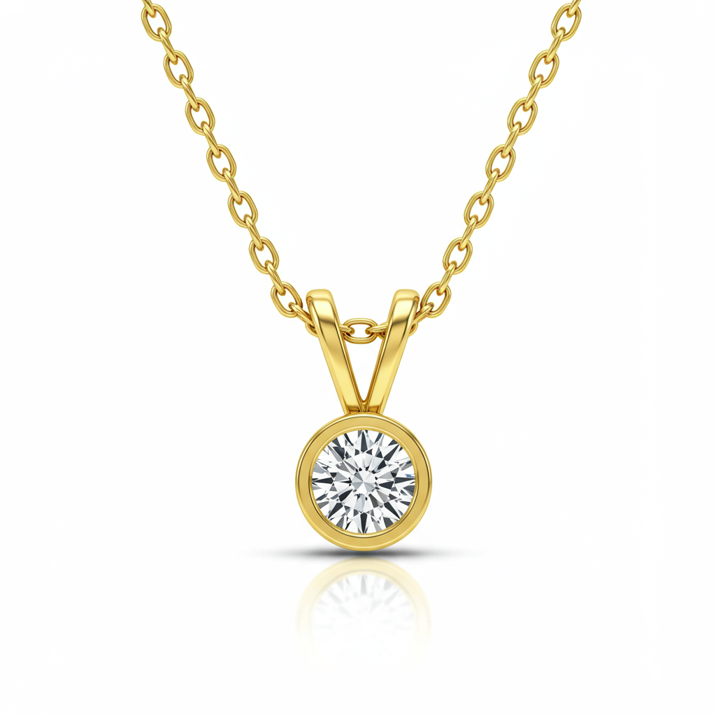 Experience understated elegance with this exquisite gold-plated solitaire necklace, a testament to refined simplicity. Crafted in lustrous 18KT yellow gold, the delicate chain gracefully suspends a brilliant round diamond, capturing light with every movement. This timeless piece boasts VVS clarity and G-H color specifications, ensuring exceptional sparkle and inherent value. Perfect for layering or as a signature, everyday accessory, it defines modern, accessible luxury. It is a stunning addition to any fine jewelry collection.