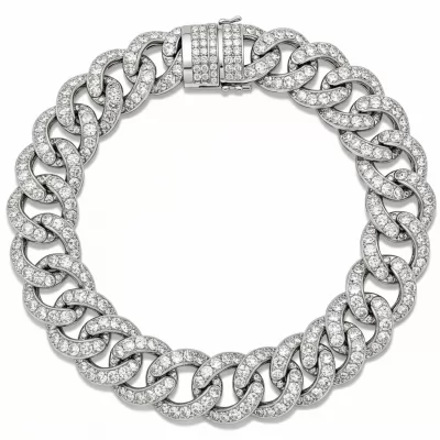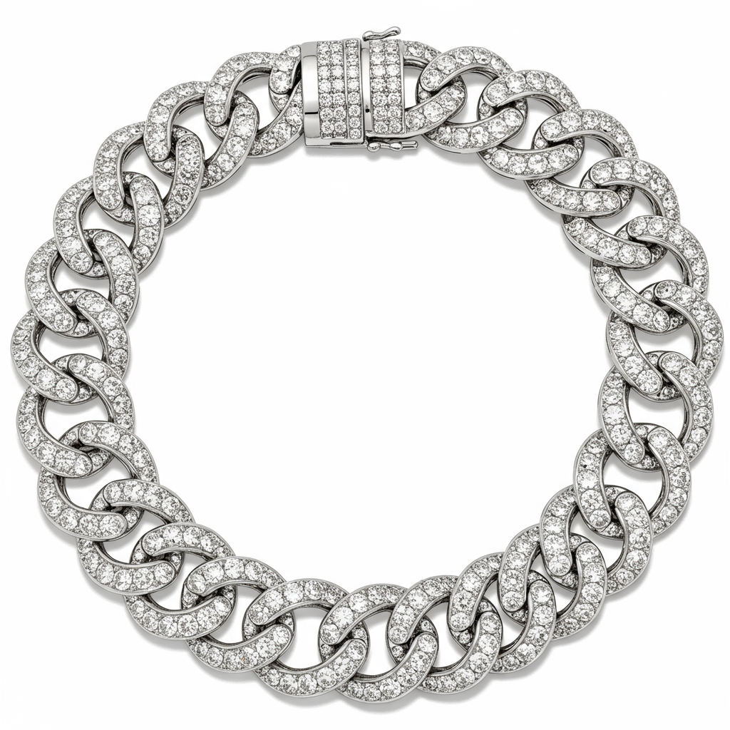 The 'heavy necklace' is a majestic statement piece, crafted entirely in luxurious 18KT white gold. This robust design features interlocking high-polish links, meticulously pave-set with numerous brilliant round diamonds, creating a continuous band of scintillating light. Its substantial weight and flawless execution signify unparalleled craftsmanship, making it the perfect heirloom for grand occasions. The intricate setting technique maximizes fire and brilliance, ensuring the necklace captures light from every angle.