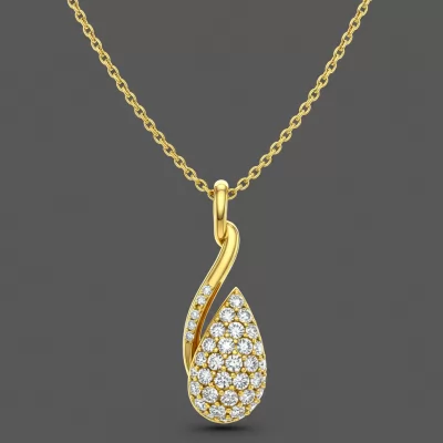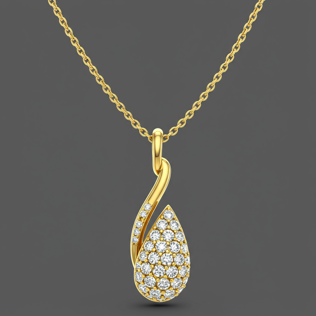 This exquisite piece captures the essence of contemporary elegance, showcasing fluid curves in highly polished 18KT yellow gold. The design features a delicate, articulated drop pendant centered with brilliant-cut diamonds in a meticulous pave setting. Each VVS stone is perfectly positioned to maximize light reflection, ensuring a breathtaking sparkle with every movement. This necklace seamlessly blends traditional craftsmanship with modern architectural styling, making it the definitive statement piece for sophisticated wear.