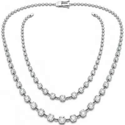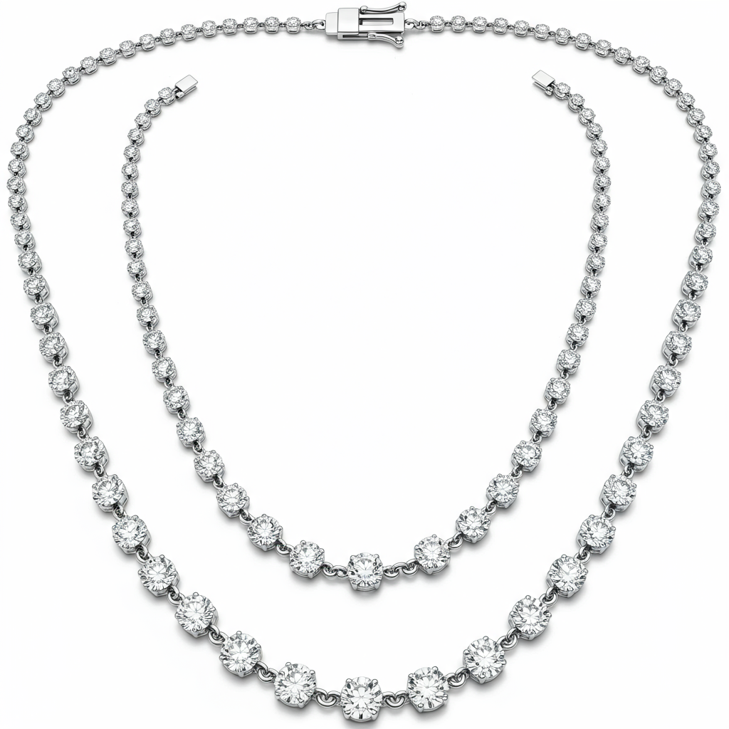This exquisite long chain necklace defines minimalist luxury and versatility. Crafted in luminous 18KT white gold, the delicate cable chain is punctuated by perfectly spaced diamond stations. Each station features a brilliant round VVS G diamond, catching light with exceptional clarity and sparkle. This timeless piece measures approximately 36 inches, making it ideal for sophisticated layering or wearing solo for a stunning statement. It is a fundamental addition to any high-end jewelry collection.