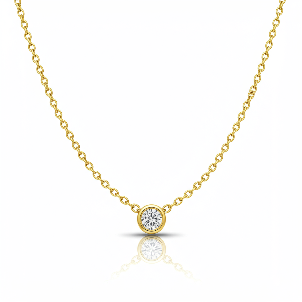 This exquisite bridal necklace embodies timeless sophistication, perfect for the modern wedding day. Crafted in luminous 18KT yellow gold, the design features a perfectly centered, brilliant-cut diamond suspended from a delicate fine chain. Its simple yet captivating elegance ensures it complements any gown without overpowering the bridal look. The flawless VVS diamond captures light beautifully, symbolizing enduring love and commitment.