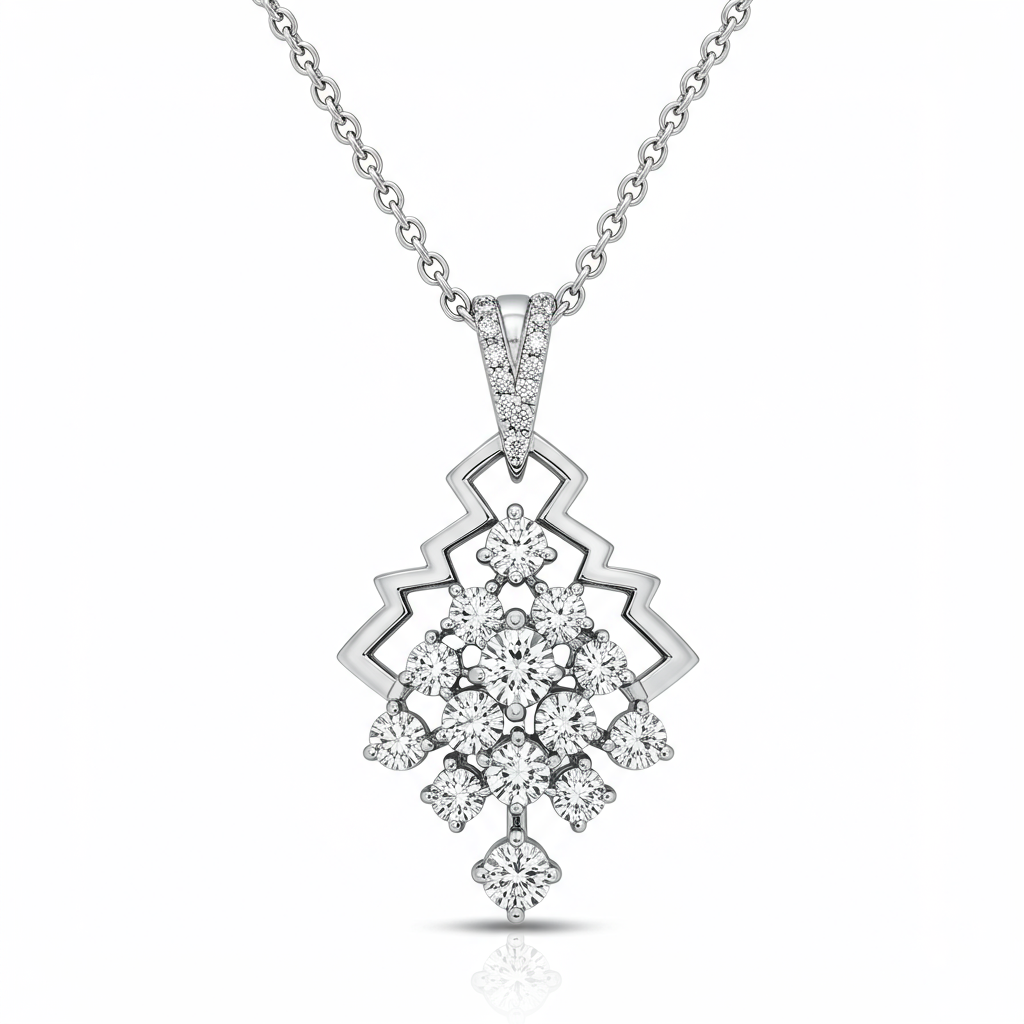 The Western Necklace embodies contemporary elegance with a bold, yet refined aesthetic. Crafted in gleaming 18KT white gold, this piece features an articulated pendant adorned with brilliant cluster-set diamonds. The design balances geometric structure with fluid movement, ensuring exceptional sparkle from every angle. It serves as the ultimate statement accessory, perfect for high-fashion events or luxurious daily wear.