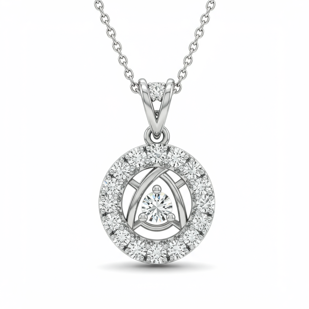 The 'new model necklace' is an emblem of modern sophistication, featuring a dazzling cluster of high-quality diamonds set in luminous 18KT white gold. Its central halo design creates an illusion of grandeur, capturing and reflecting light from every angle. The precision craftsmanship ensures a comfortable drape and enduring brilliance. This piece transitions effortlessly from daywear elegance to evening glamour, making it a truly versatile heirloom. It represents the perfect fusion of contemporary design and timeless luxury.