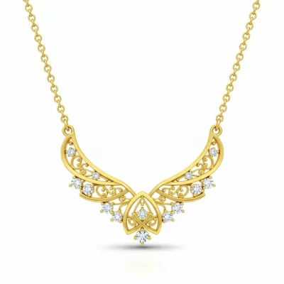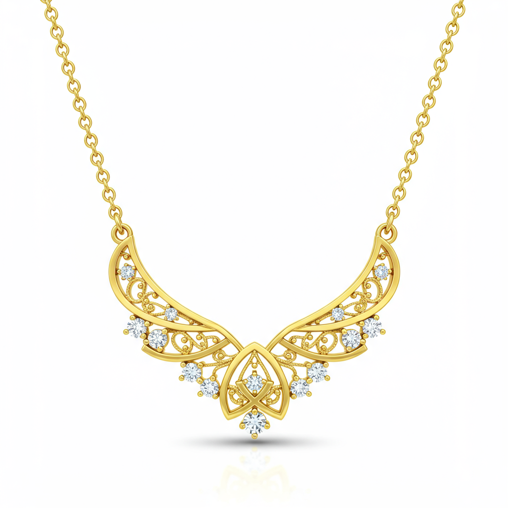 A quintessential piece designed to gracefully complement the traditional drape of a saree. This simple yet sophisticated necklace features 18KT yellow gold craftsmanship, highlighting a delicate arrangement of brilliant VVS diamonds. Its refined silhouette ensures it remains light and comfortable, providing the perfect touch of sparkle without overpowering the fabric. This necklace is an elegant foundation for both daytime events and subtle evening gatherings.