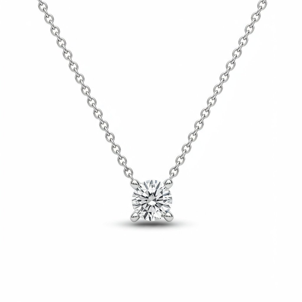 The Crystal Necklace embodies breathtaking purity and light, featuring a magnificent G VVS clarity center stone suspended from a delicate 18KT white gold chain. This timeless solitaire design is meticulously crafted to maximize the diamond's fire and scintillation from every angle. It represents sophisticated elegance, making it the perfect statement piece for life's most cherished occasions. The minimalist setting allows the exceptional clarity of the crystal-like diamond to command all attention, offering unparalleled brilliance.