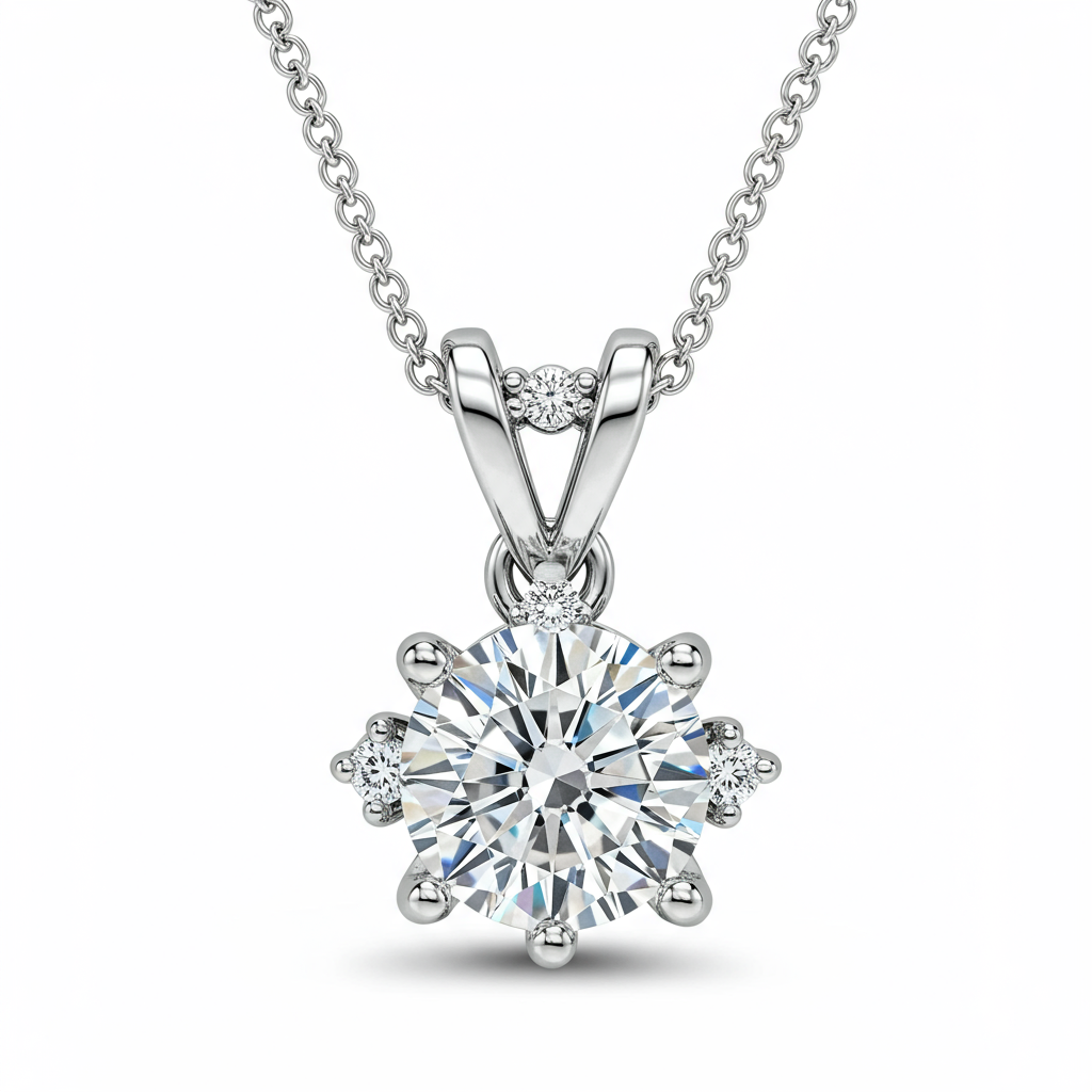 The Engagement Solitaire Necklace Set embodies timeless elegance, featuring a brilliant cut diamond suspended in a delicate four-prong setting. Crafted in luxurious 18KT white gold, this piece captures light from every angle, radiating unmatched brilliance. It is paired with a matching, sturdy chain designed for comfortable, secure wear. This set serves as the perfect symbol of eternal commitment and refined taste, ensuring heirloom quality. Its subtle brilliance makes it ideal for daily wear or grand occasions.