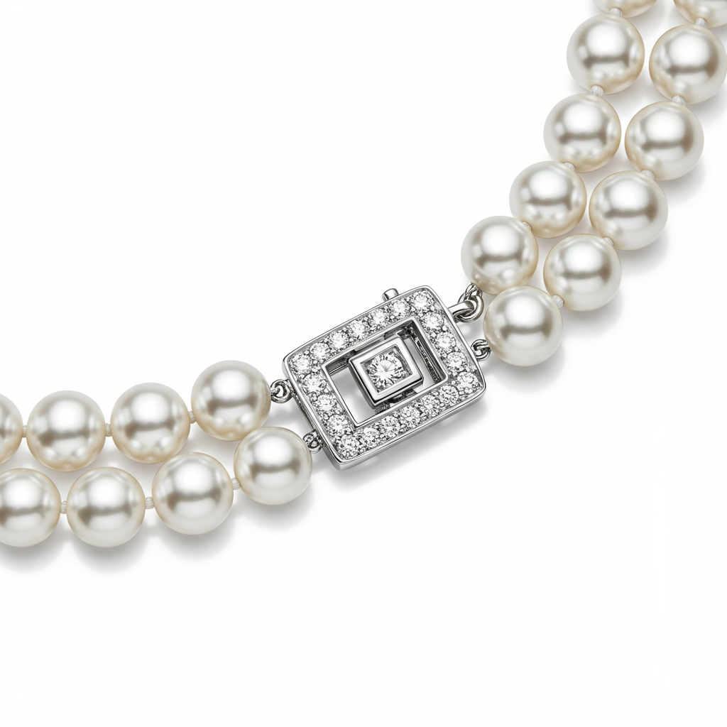 The white moti necklace epitomizes timeless elegance, featuring a meticulously matched strand of luminous cultured pearls. This classic design is elevated by an exquisite 18KT white gold hidden clasp, pave-set with brilliant VVS round diamonds. The purity of the white moti combined with the scintillating diamond accents creates a piece of unparalleled sophistication. This necklace is designed to be a treasured heirloom, perfect for the most formal occasions.