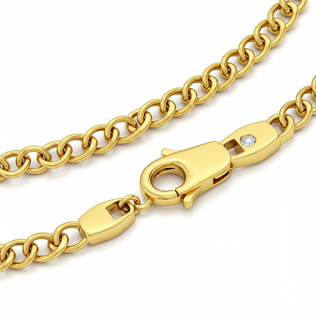 This exquisite 10 gram gold necklace is meticulously crafted in radiant 18KT yellow gold, offering a classic yet substantial feel. The design features a finely woven anchor link chain that catches the light beautifully, making it perfect for both standalone elegance or layered styling. Secured by a robust lobster clasp, this piece ensures lasting wear and superior comfort. Its timeless design and premium weight make it an essential foundation for any sophisticated jewelry collection.