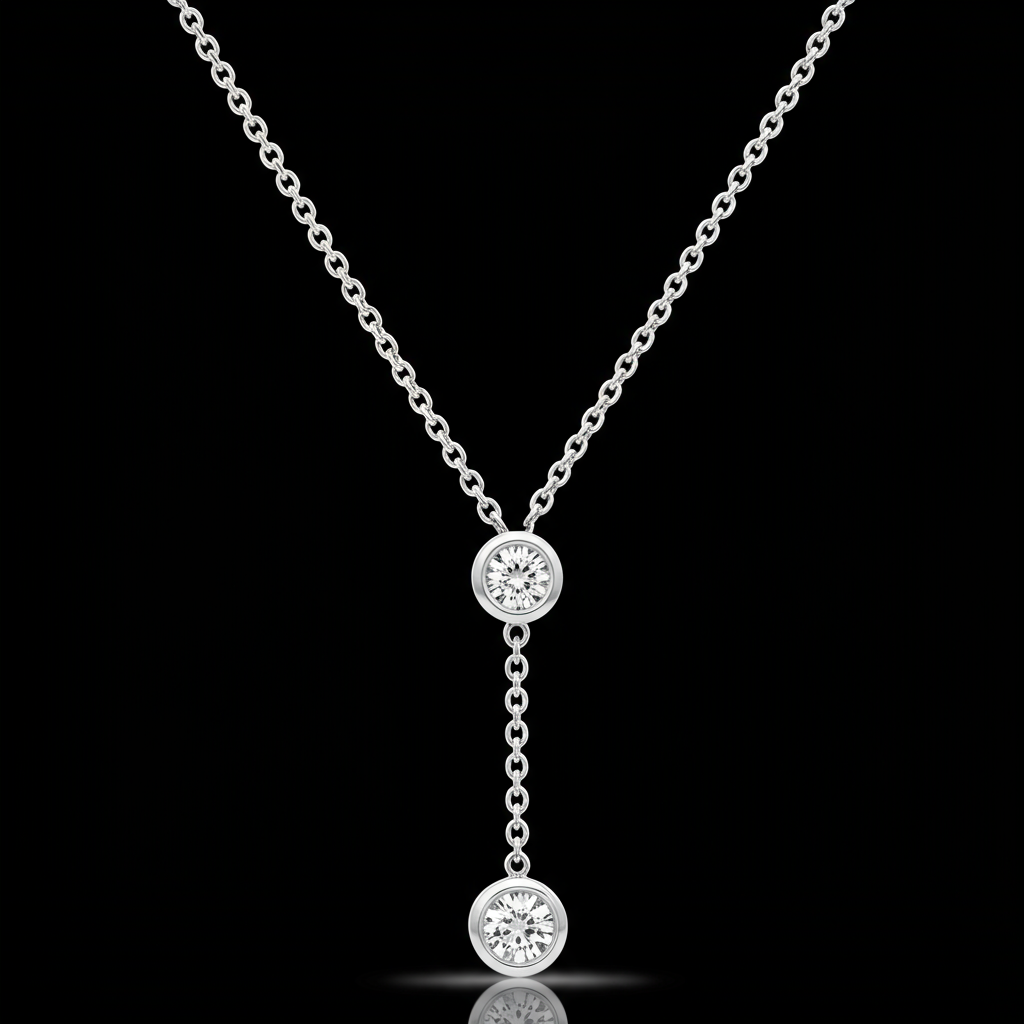 The Diamond Lariat Necklace embodies timeless elegance and modern sophistication. Crafted in brilliant 18KT white gold, this piece features flawless VVS and VS diamonds set to maximize brilliance. Its adjustable lariat design allows for versatile styling, making it perfect for both daytime chic and evening glamour. This exceptional piece reflects superior craftsmanship, offering unparalleled sparkle and luxury.