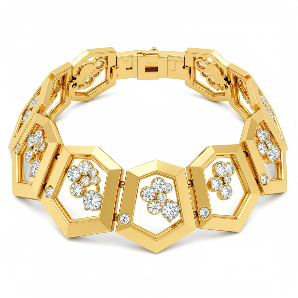 This exquisite choker defines modern elegance with its effortlessly lightweight structure, perfect for daily wear or layered styling. Crafted in luminous 18KT yellow gold, the design features delicate, articulated segments that sit comfortably against the neckline. A subtle shimmer is introduced through precision-set accent diamonds, catching the light with every movement. This versatile piece balances minimalist aesthetics with refined luxury, making it an essential addition to any contemporary jewelry collection.