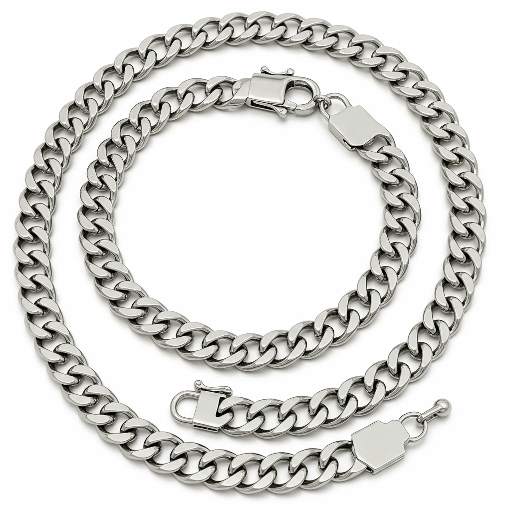 The epitome of masculine elegance, this substantial men's chain necklace is meticulously crafted from highly polished Sterling Silver. Featuring robust, interlocking Cuban links, the design offers both a striking visual presence and enduring durability. This iconic piece moves seamlessly from professional settings to casual weekend wear, providing a timeless foundation for any luxury collection. Secured with an oversized lobster clasp, it guarantees comfort and security during daily wear.