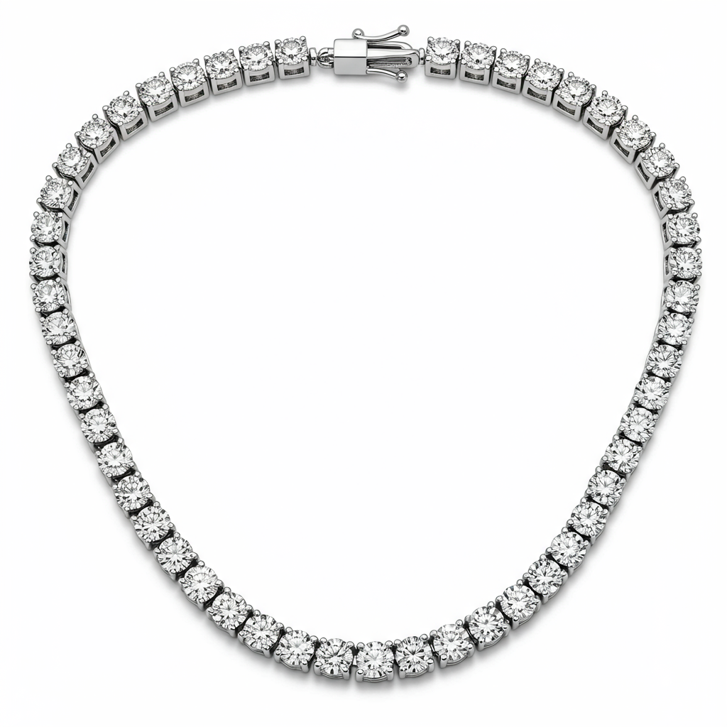 The 'necklace png' Diamond Line Necklace embodies timeless elegance, featuring a continuous row of 75 perfectly matched brilliant-cut diamonds. Each stone is meticulously set in polished 18KT white gold, creating an uninterrupted stream of fiery brilliance. This exquisite piece drapes gracefully, making it the ultimate statement accessory for formal events or adding luxury to everyday wear. Its flexible design ensures superior comfort and a flawless fit, symbolizing enduring sophistication and high craftsmanship.