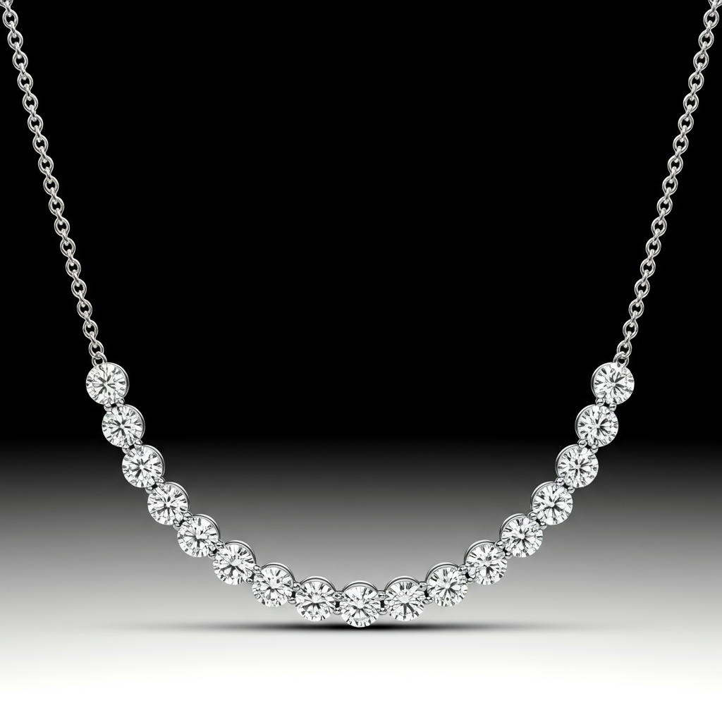 Experience timeless elegance with the Single Line Diamond Necklace, a masterpiece of minimalist luxury. This exquisite piece features a continuous stream of brilliant round diamonds meticulously set in flexible 18KT white gold. The fluid design ensures a comfortable drape that captures and reflects light from every angle. It is the perfect statement accessory, lending an air of sophistication to both everyday wear and formal occasions.