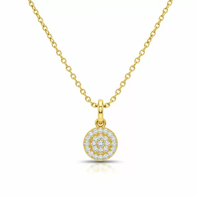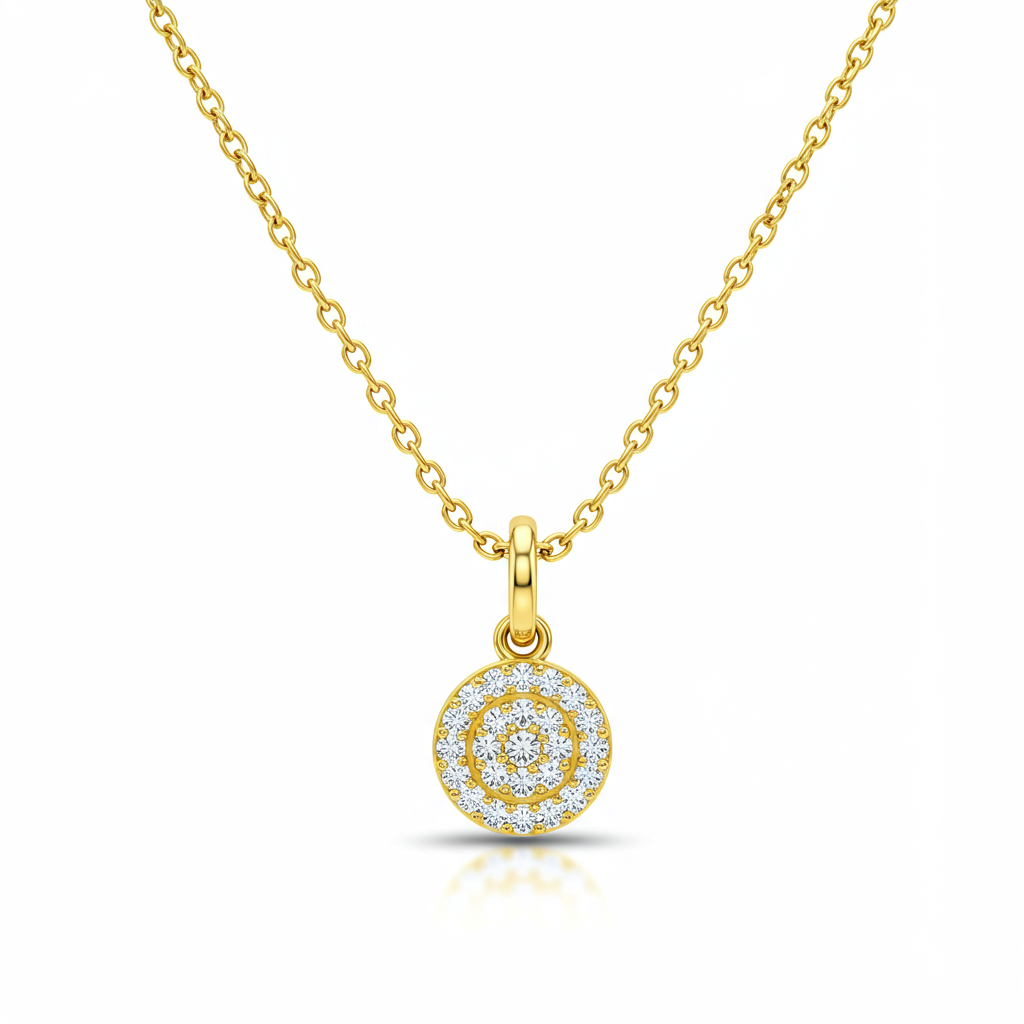 This delicate 18KT yellow gold baby necklace is designed for timeless elegance and sentimental value. It features a charming miniature pendant adorned with brilliant VVS and VS round diamonds, meticulously micro-pave set to maximize light return and sparkle. Perfect as a treasured keepsake or a luxurious gift for a new arrival, this piece symbolizes pure, enduring love. The lightweight design ensures comfort and grace, making it suitable for daily wear and cherished moments. It is an heirloom piece crafted with exceptional precision.