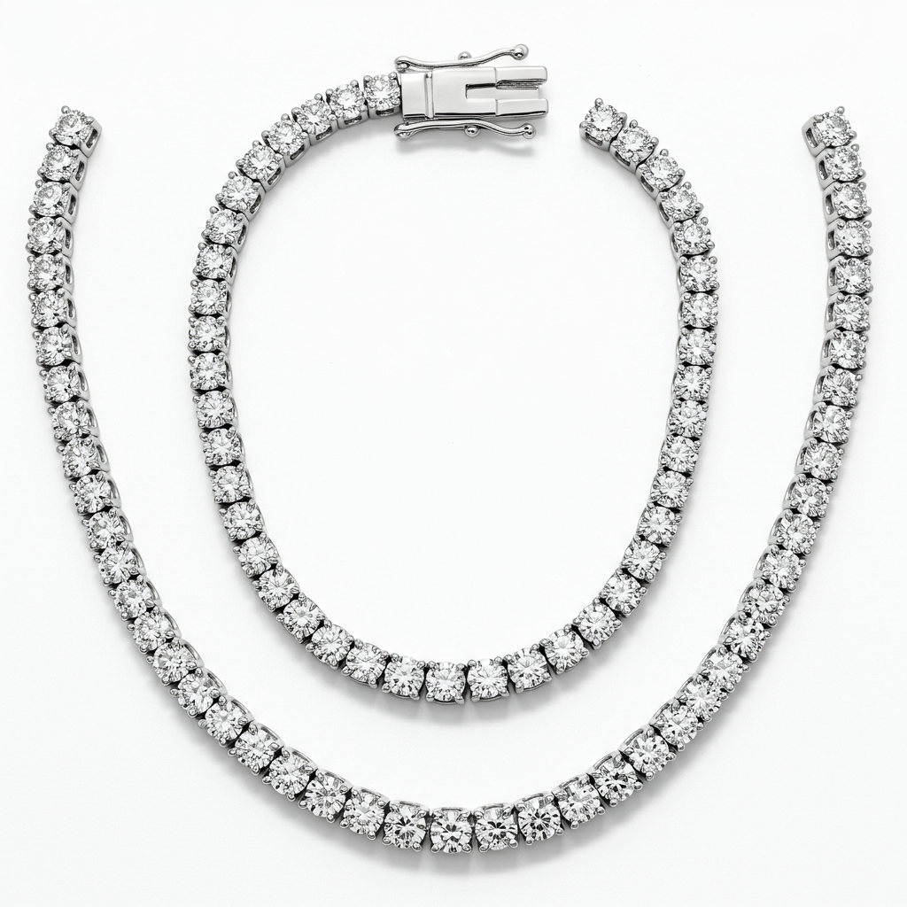 This exquisite diamond tennis necklace features a continuous stream of perfectly matched, brilliant round diamonds set in secure four-prong baskets. Crafted in lustrous 18KT white gold, the design provides maximum sparkle and movement, making it a truly timeless statement piece. Its flawless articulation ensures it rests elegantly on the neckline, transitioning seamlessly from day wear to gala events. This piece is the epitome of sophistication and eternal glamour, representing an unmatched standard of luxury jewelry.